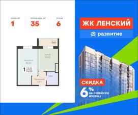 В продаже квартира площадью 35.00 кв. м с отделкой white box на 6 этаже 16 этажного дома. Квартира находится в 4834 корпусе: