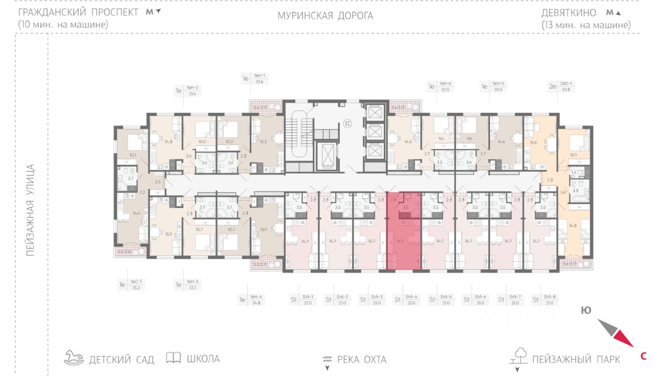 • 20 минут на авто до станций "Гражданский проспект" и "Академическая";