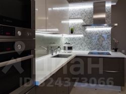 Кухня по авторскому дизайну с использованием искусственного камня и стекла.