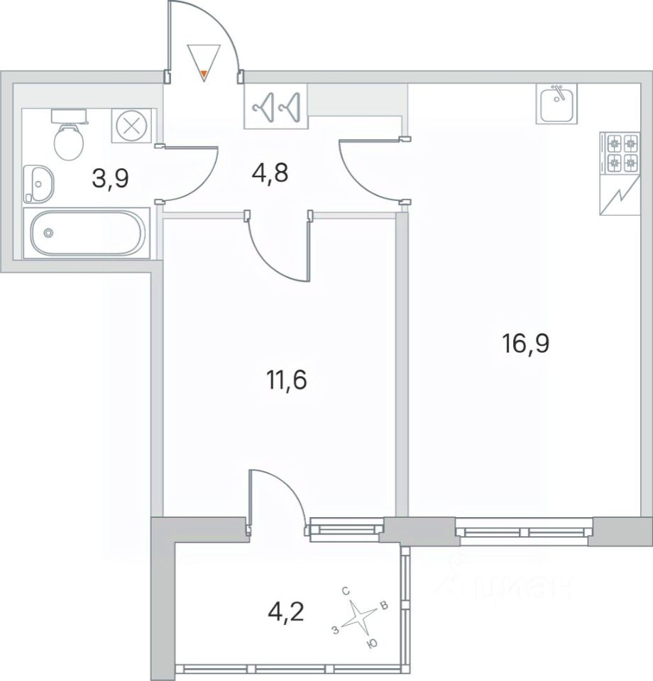 16,9 м²