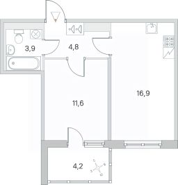 Площадь кухни16,9 м²
