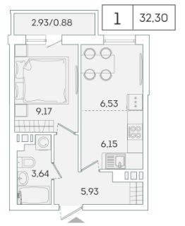 В продаже от застройщика 1 комнатная квартира 31.8 кв. м с предчистовой отделкой white box и практичной планировкой для удобной организации пространства. Корпус сдан, идет выдача ключей.