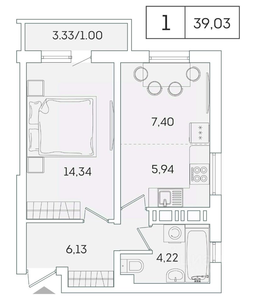 В продаже от застройщика 1 комнатная квартира 37.9 кв. м с черновой отделкой и практичной планировкой для удобной организации пространства. Корпус сдан, идет выдача ключей.
