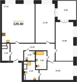 Продается просторная четырехкомнатная квартира в новом монолитно-кирпичном доме 2024 года постройки. Общая площадь — 129.4 кв. м, из которых 58.1 кв. м — жилая площадь и 37.2 кв. м занимает кухня. Квартира расположена на 5 этаже 8-этажного дома. Высокие потолки — 3 метра. Также есть лоджия с видом как во двор, так и на улицу.