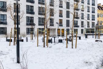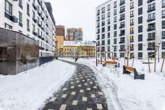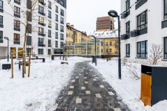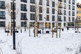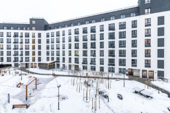 Во дворе — детская площадка, зоны отдыха, подземный и гостевой паркинг. Территория комплекса под круглосуточным видеонаблюдением.