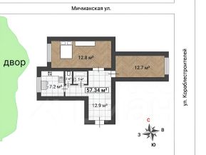 Предлагаем приобрести уютную и светлую 2-комнатную квартиру на высоком 1 этаже!