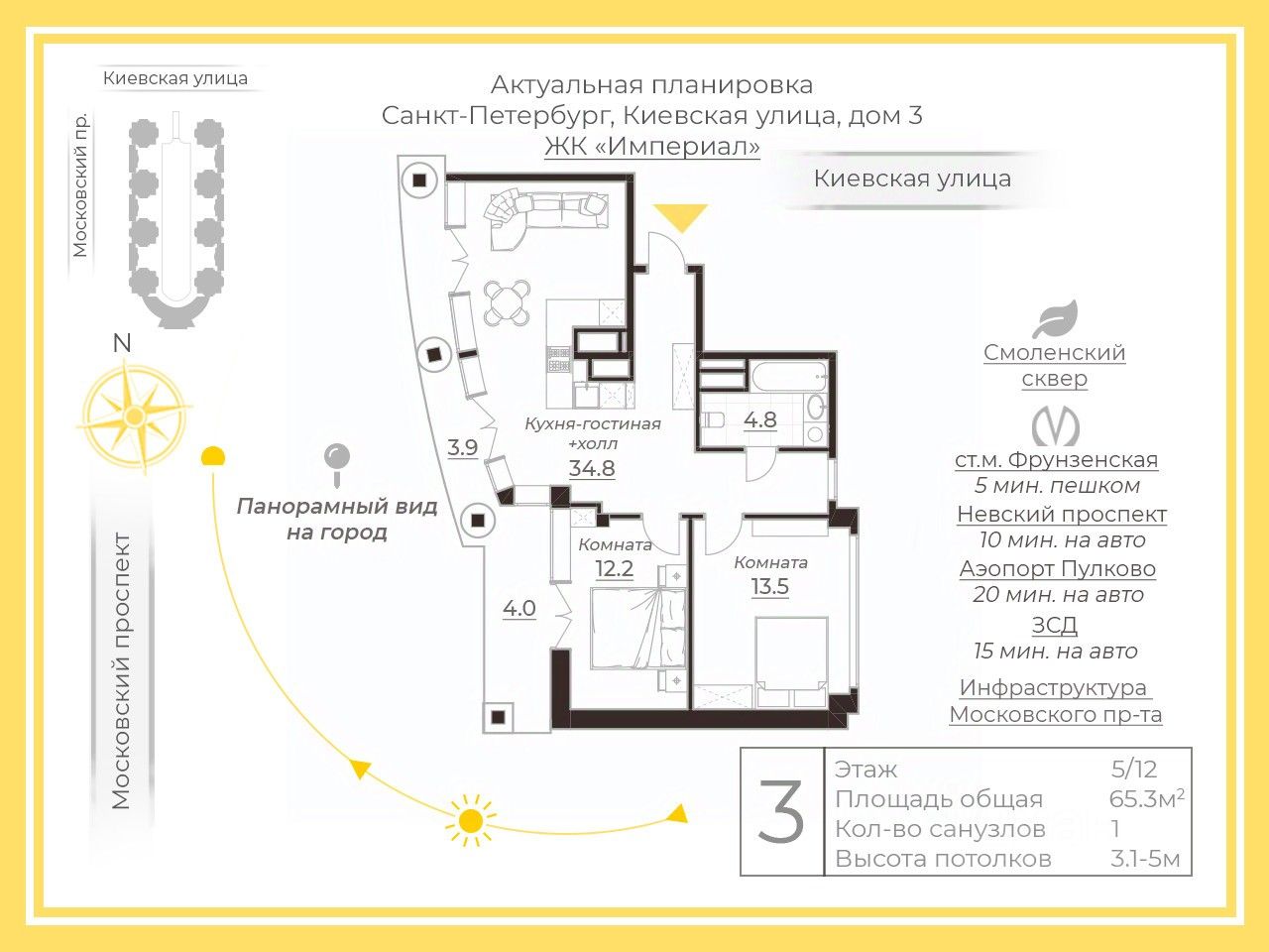 Арт. 126594594 Продажа квартиры с панорамными окнами в пол и потолками высотой от 3 до 5 м в ЖК "Империал", знаковый проект вблизи метро Московская.