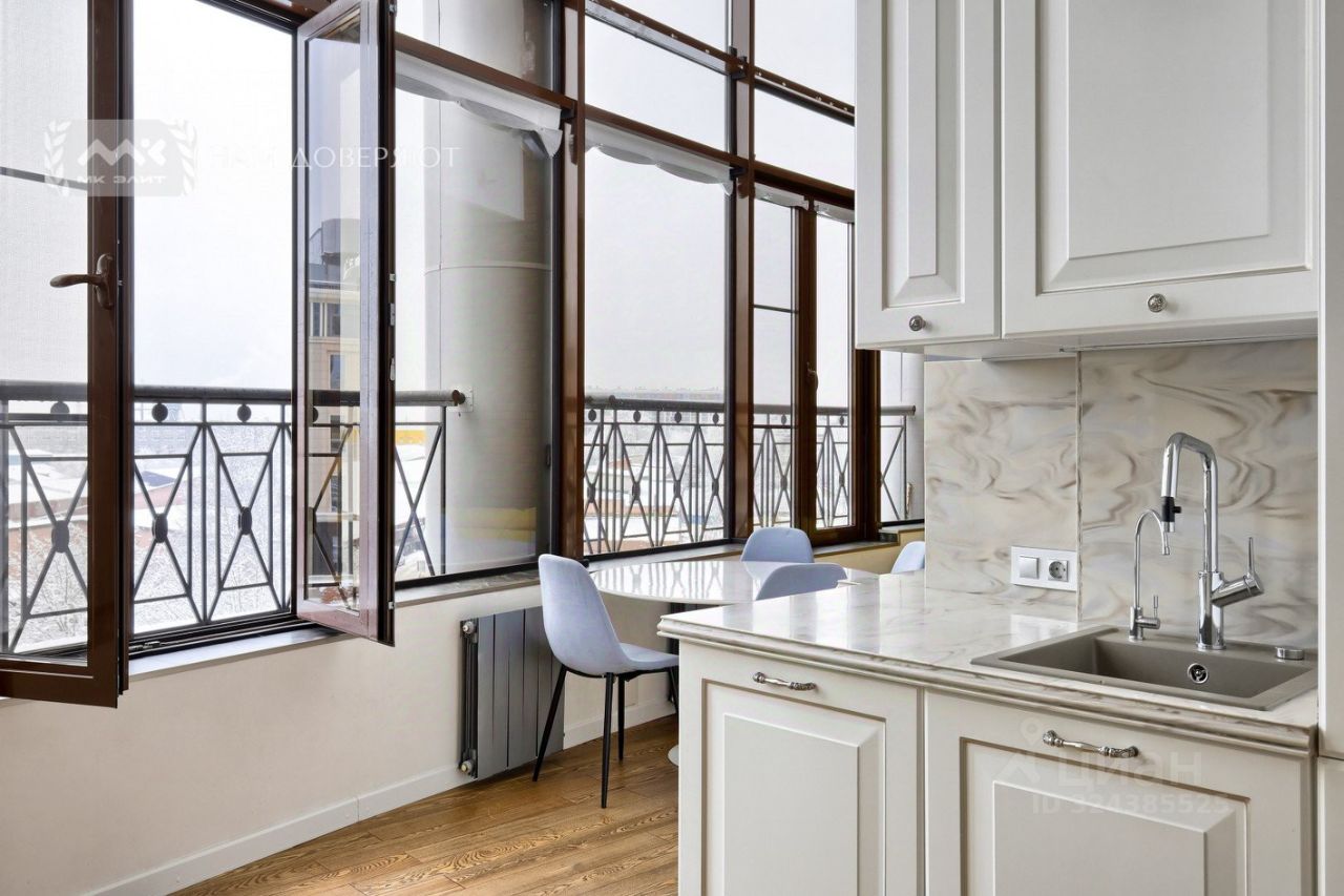 В квартире выполнен дизайнерский ремонт - две изолированных спальни и просторная кухня-гостиная, где высота потолка 5 м. Квартира очень светлая и наполненная воздухом , точно не оставит никого равнодушным.