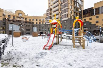 Квартира двусторонняя, окна смотрят из гостиной и одной из спален на панораму города, из холла и второй спальни на внутренний широкий променад двора. Дворовая территория заслуживает особого внимания - настоящий широкий прогулочный сквер, с фонарями и скамейками, есть детские площадки,