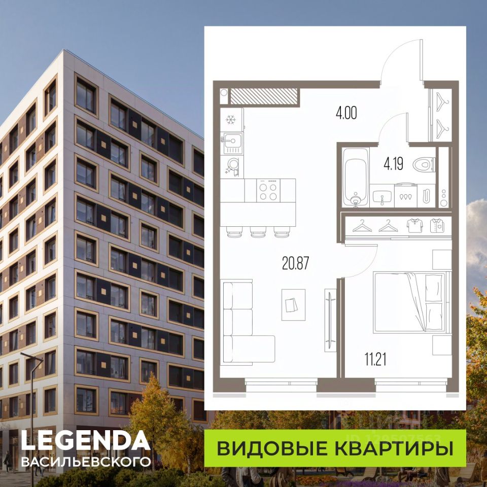Продается однокомнатная квартира с предчистовой отделкой в ЖК "LEGENDA Васильевского" на 7 этаже. Общая площадь: 40.27 кв.м., жилая: 11.21 кв.м., площадь просторной кухни-столовой: 20.87 кв.м. Все окна выходят на одну сторону. В квартире один совмещенный санузел. Высота потолков 2.72 м.