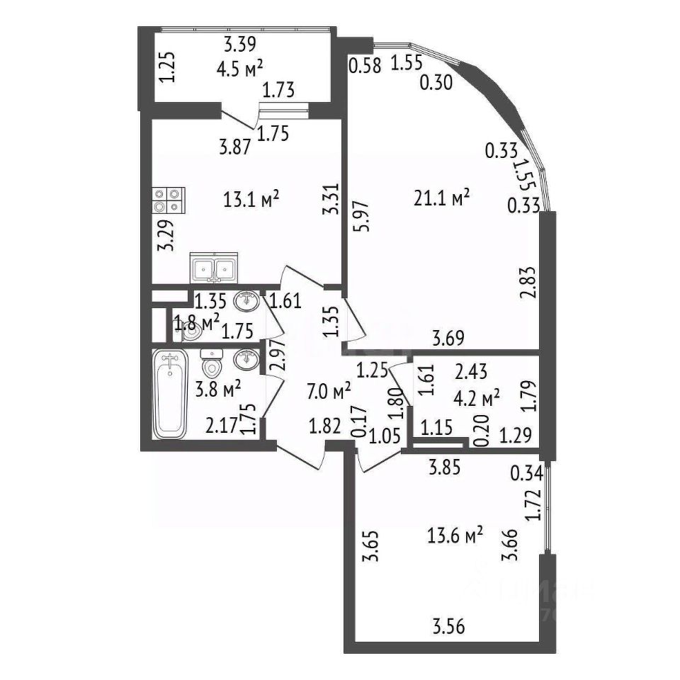 Предлагается к продаже квартира площадью 64.4 м² с готовым дизайнерским ремонтом в жилом комплексе бизнес-класса "Пять Звёзд".