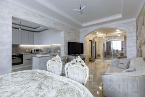 Квартира 92.4 кв. м расположена на 11/21 этаже кирпично-монолитного дома. Планировка квартиры функциональна и продумана. Просторная гостиная 14.4 кв.м., объединенная с кухней 11 кв.м., две спальни 24.7 и 17.6 кв.м, два сан.узла, балкон и коридор позволят дружной семье, как проводить время совместно и принимать гостей, так и отдыхать с комфортом, не мешая друг другу. Ремонт выполнен из дорогостоящих и качественных материалов, а значит продолжительное время квартира не будет требовать вложений. Территория комплекса закрыта, имеет службу консьержей а также охраняемый подземный паркинг.