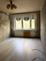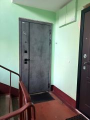 Удобная планировка — распашонка, комнаты 15.2 и 12.3, окна выходят на две стороны дома, но не на улицу с автомобильным движением.
