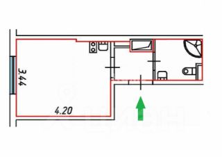 Квартира интересной планировки с большим санузлом и комнатой правильной формы, выполнена чистовая отделка: в санузле - керамогранит, в комнате - обои под покраску, на полу - ламинат. За счет высокого этажа у нас светло и много воздуха, посмотрите на фото, какой открывается вид из окна!