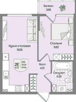 Общая площадь40,48 м²