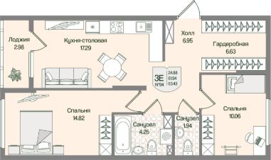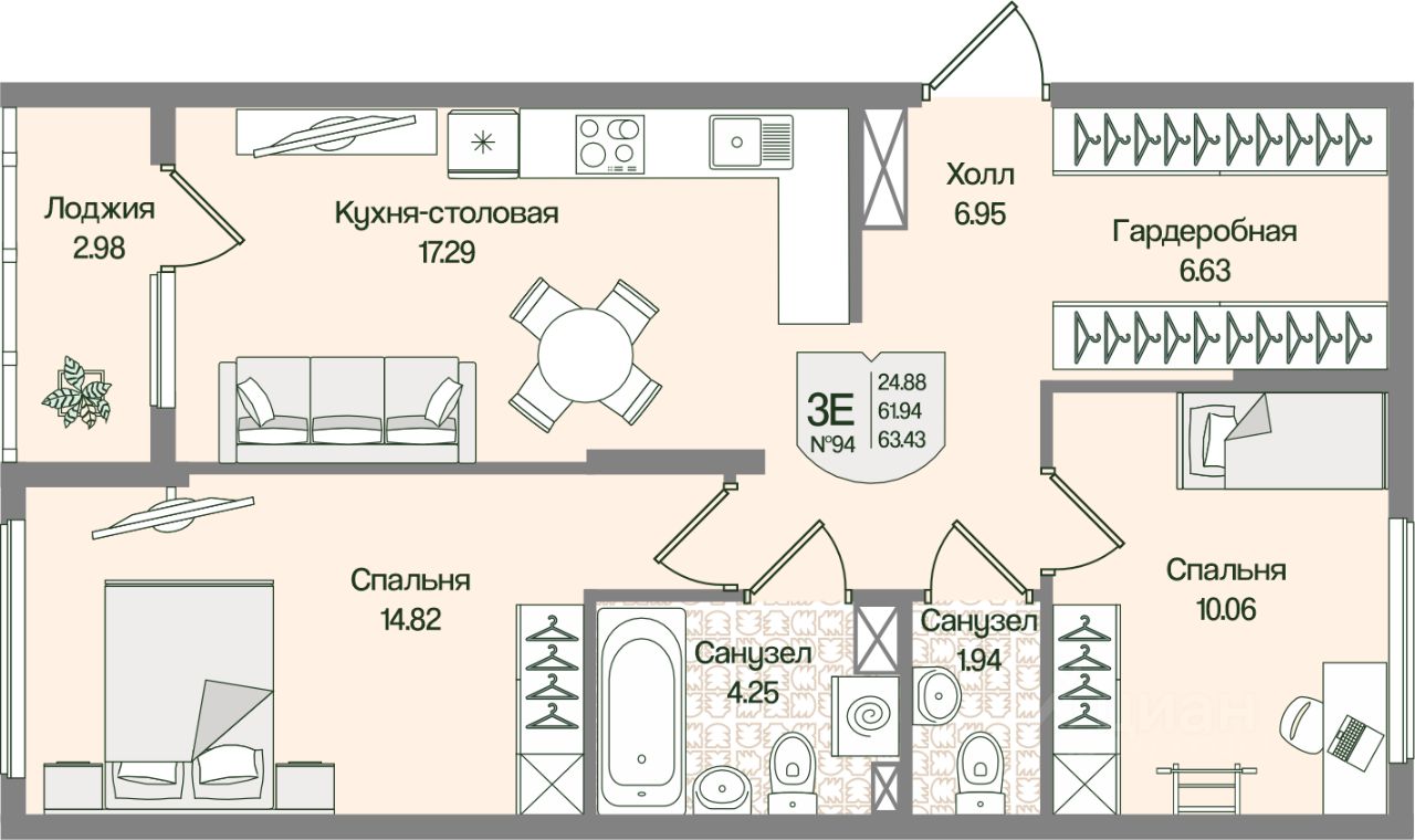 Общая площадь63,43 м²