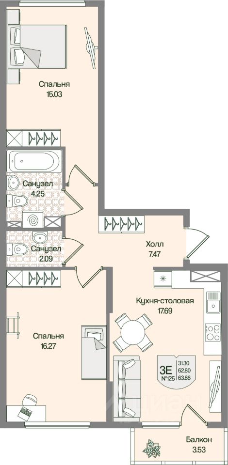 Квартал малоэтажный, всего 4 этажа. Высота потолков при этом от 3 м и выше. Квартиры спроектированы таким образом, чтобы закрыть потребности в ежедневном комфортном проживании для семей любого состава.