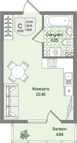 Общая площадь28,19 м²