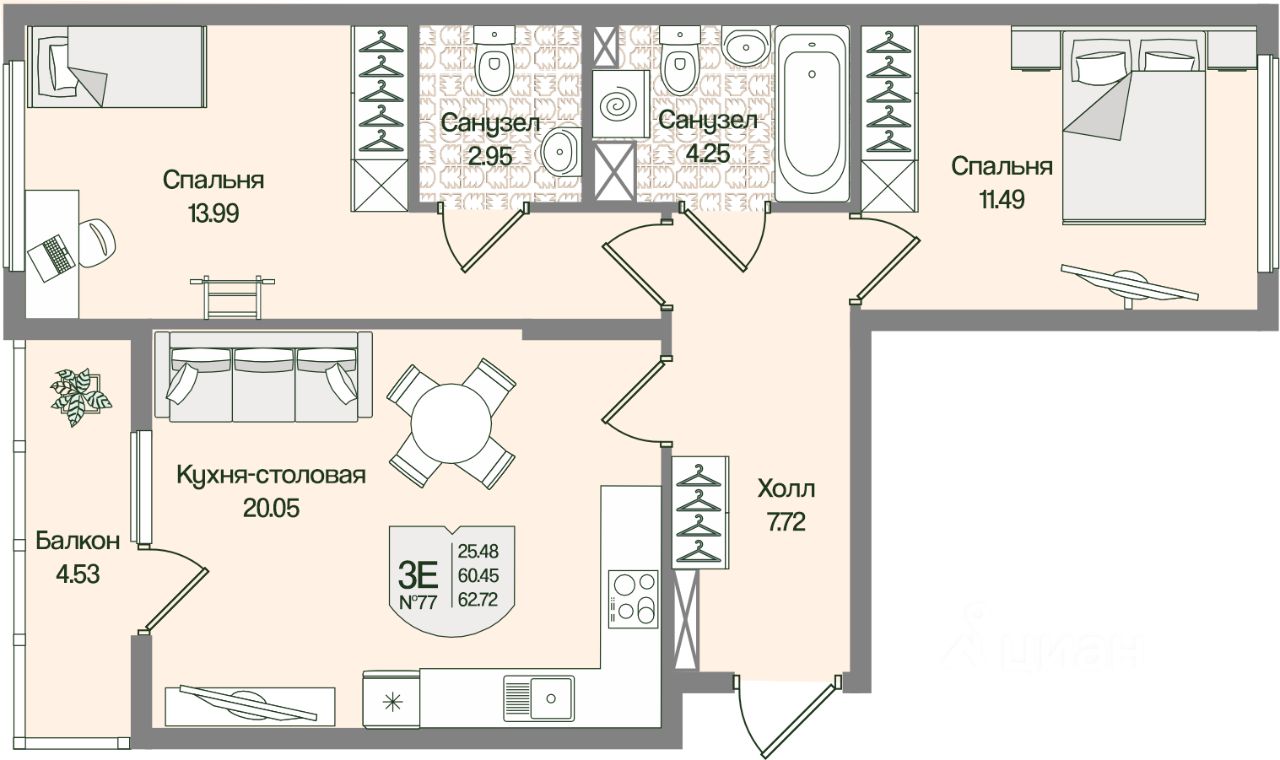 Квартал малоэтажный, всего 4 этажа. Высота потолков при этом от 3 м и выше. Квартиры спроектированы таким образом, чтобы закрыть потребности в ежедневном комфортном проживании для семей любого состава.