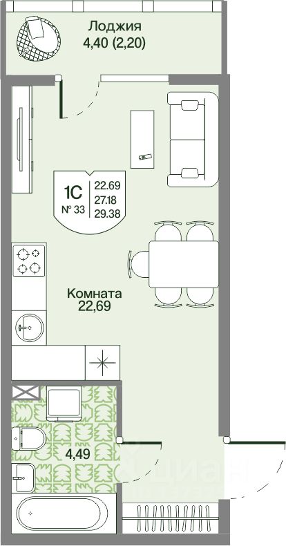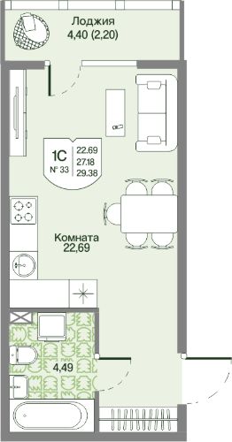 Общая площадь29,38 м²