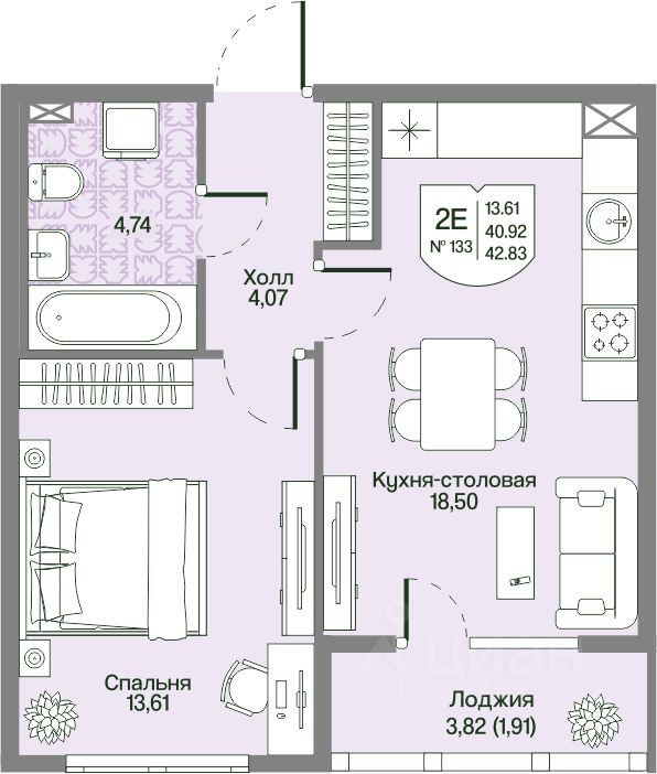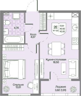 Общая площадь42,83 м²