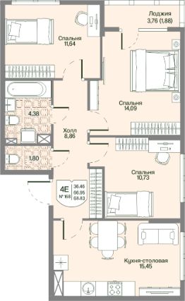 Квартал малоэтажный, всего 4 этажа. Высота потолков при этом от 3 м и выше. Квартиры спроектированы таким образом, чтобы закрыть потребности в ежедневном комфортном проживании для семей любого состава.