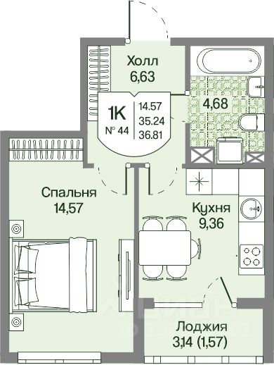Общая площадь36,81 м²