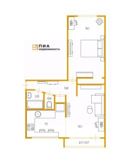 Кухня-гостиная 18,3 м² — увеличена за счёт перепланировки и объединения с комнатой.
