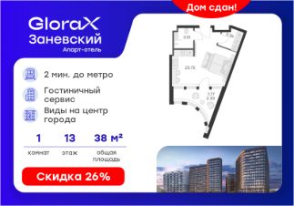 Апартаменты "GloraX Заневский" - проект бизнес-класса с развитой инфраструктурой, удовлетворяющей все потребности самых взыскательных гостей. Располагается в одном из наиболее перспективных, районов Петербурга в 2х минутах от метро "Ладожская" и в 10 минутах от Невского проспекта.