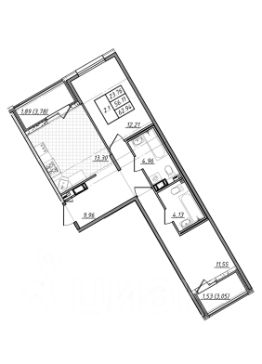 Общая площадь 56.11 кв.м, кухня 13,3 кв.м, 2 лоджии, 2 санузла, мастер-спальня.