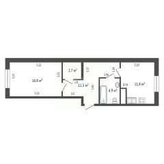 - 2ЕВРО квартира с кладовкой: комната 16,8 м2 и кухня-гостиная 11,8 м2, оборудованный санузел, просторная прихожая;