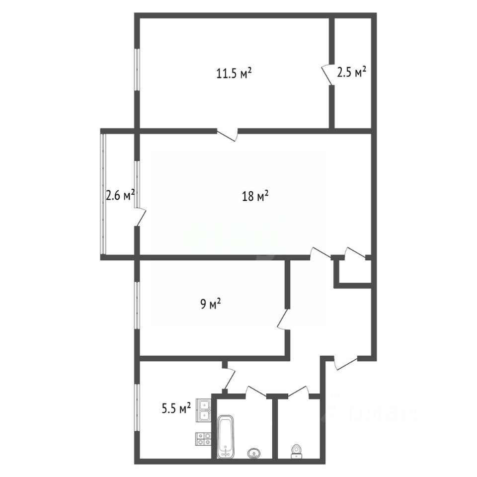 • Oбщaя площадь квaртиры: 54 кв.м., балкон 2.6 кв.м