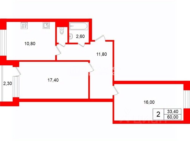 33,4 м²