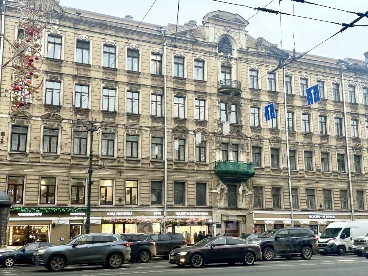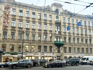 Комната расположена в 10-комнатной коммунальной квартире, в доме на углу улицы Рубинштейна и Невского проспекта.
