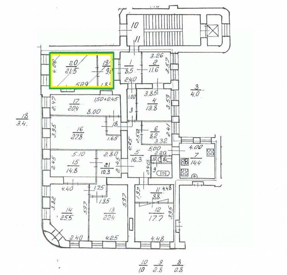 3/5 эт. теплого кирпичного дома 1899 года постройки.
