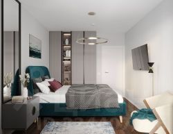 Между корпусами расположены спортивные и детские площадки, пешеходный бульвар. В квартире выполнена полная отделка "Comfort Wood" из качественных материалов: прочный ламинат цвета благородного дуба, фактурные белые обои, керамическая плитка в ванной.