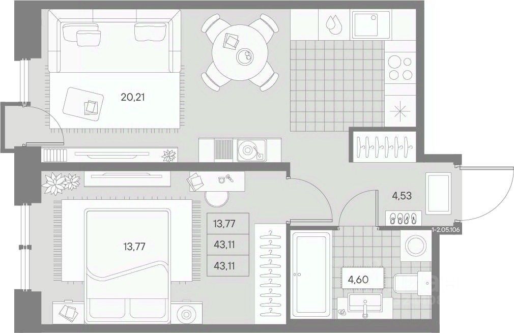 Общая площадь43,11 м²