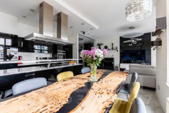 Почти 40-метровая кухня-гостиная становится центром дома — место, где можно собираться с близкими, работать, отдыхать и наслаждаться атмосферой большого светлого пространства.
