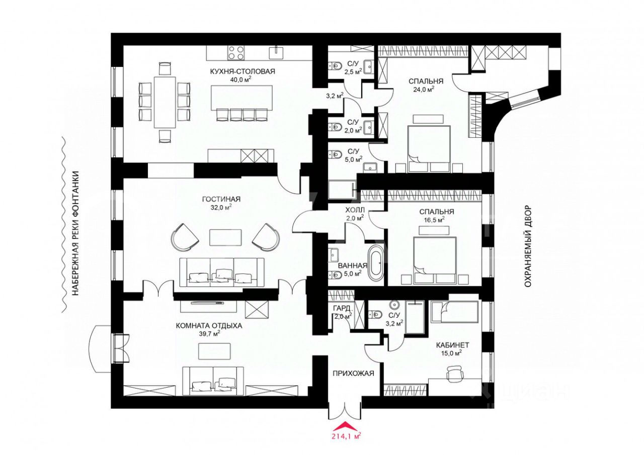 Локация — один из ключевых факторов. Фонтанка — река, с которой начинался Петербург, и которая по-прежнему остаётся его культурной осью. В пешей доступности — Юсуповский дворец, Никольский собор, Мариинский театр, Набережная Крюкова канала и Сенная площадь. До метро — семь минут спокойным шагом.