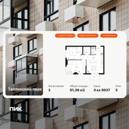 Продаётся 2-комн. квартира площадью 51,28 кв.м на 5 этаже 12 этажного дома (Корпус 4.1, Секция 3) проекта ПИК Таллинский парк. Светлый просторный подъезд на уровне земли, функциональная планировка, большие окна, c отделкой.
