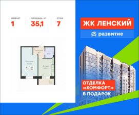 В продаже квартира площадью 35.10 кв. м с отделкой на 7 этаже 16 этажного дома. Квартира находится в 4835 корпусе: