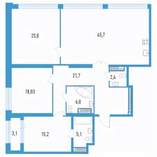 Продаётся 2-комнатная квартира в строящемся доме (Секции 15 и 16), срок сдачи: IV-кв. 2025, общей площадью 139.6 кв.м., на 16 этаже.