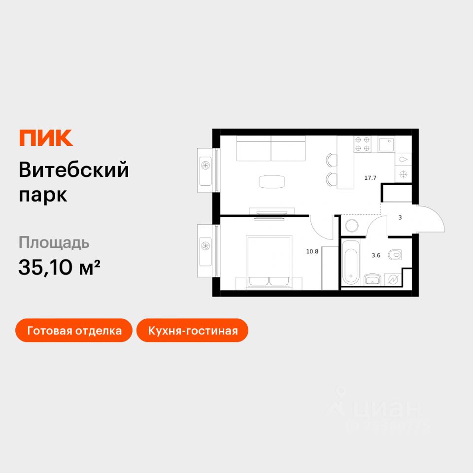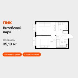 Продаётся 1-комн. квартира площадью 35,1 кв.м на 4 этаже 12 этажного дома (Корпус 7, Секция 5) проекта ПИК Витебский парк. Светлый просторный подъезд на уровне земли, функциональная планировка, большие окна, c отделкой.