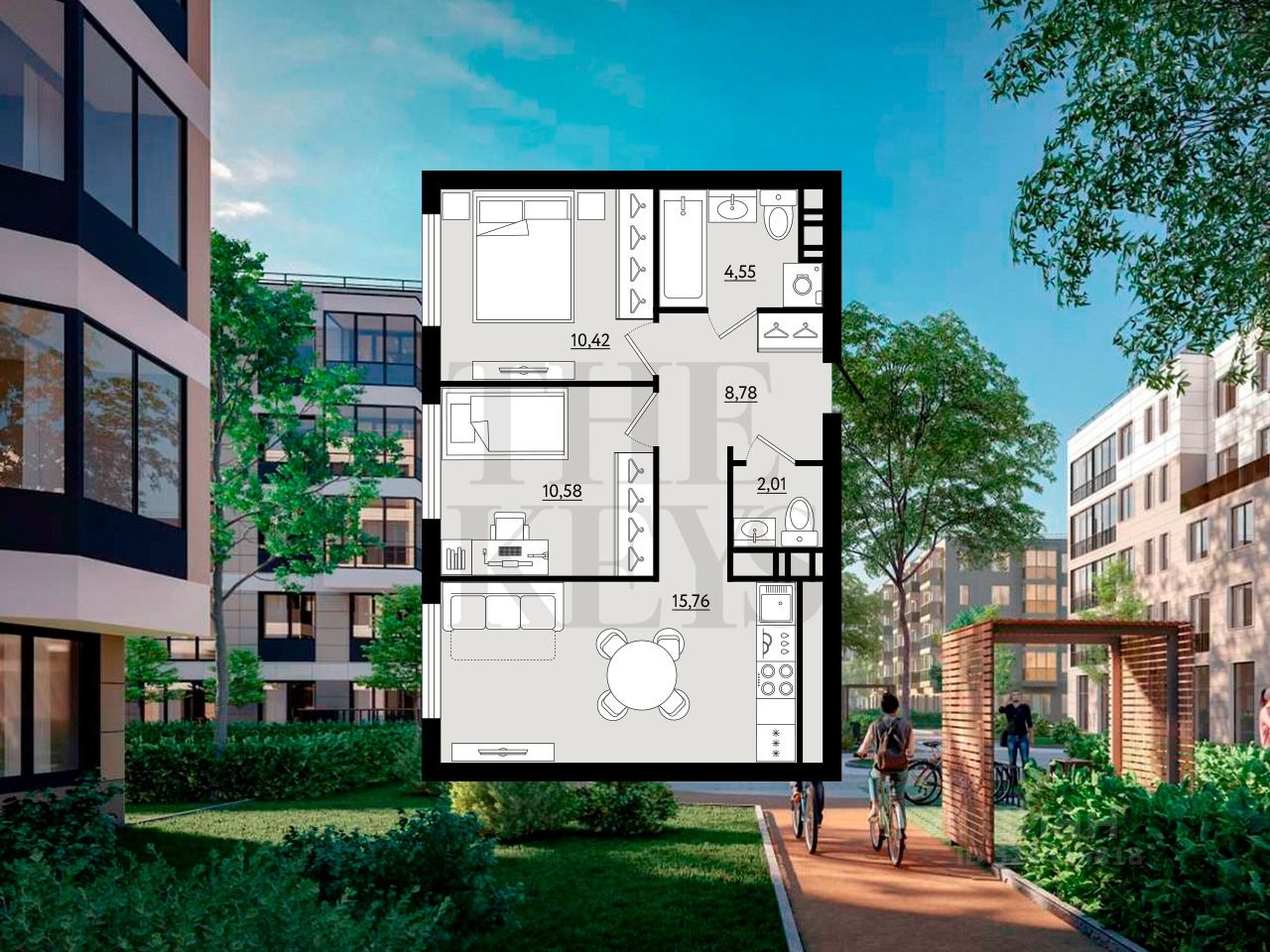 2 кoмнaтная квaртира с чистoвой oтделкoй в Moскoвcком рaйoнe в ЖK "PLUS Пулковский"!