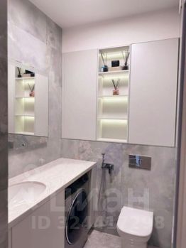 Шикарная большая гардеробная с системой хранения. Мебель в гардеробной и в санузле премиального качества также выполнена под заказ! Дорогая сантехника! В санузле установлена стирально-сушильная машина.