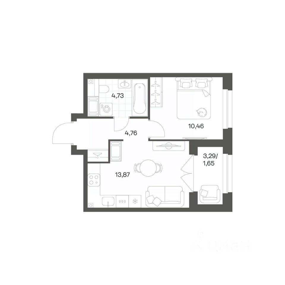 Продается квартира площадью 35.47 м²