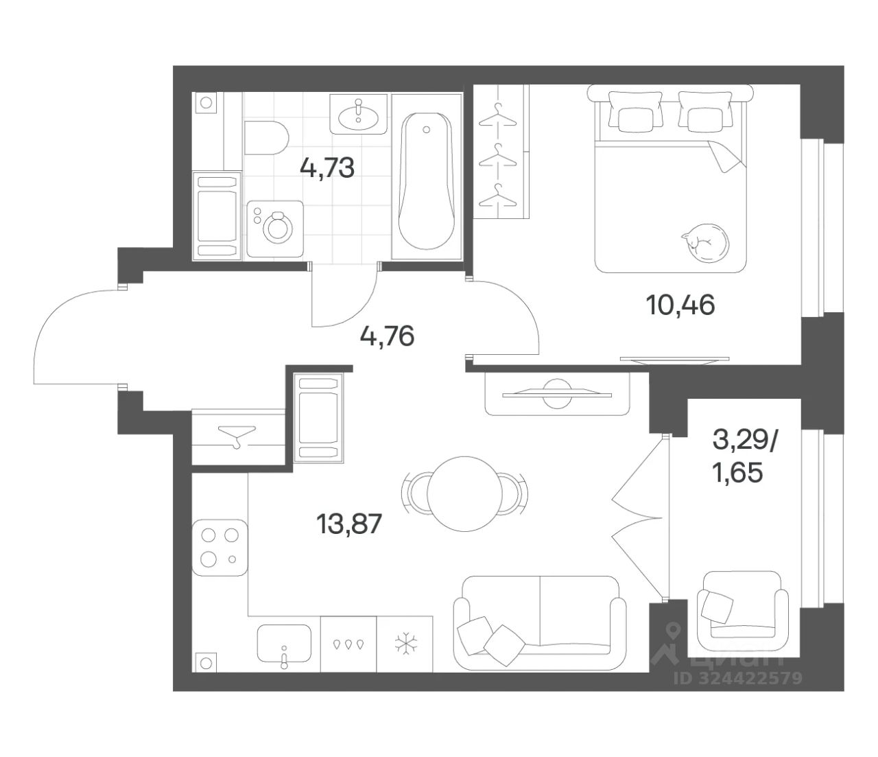 Продается квартира площадью 35.47 м²
