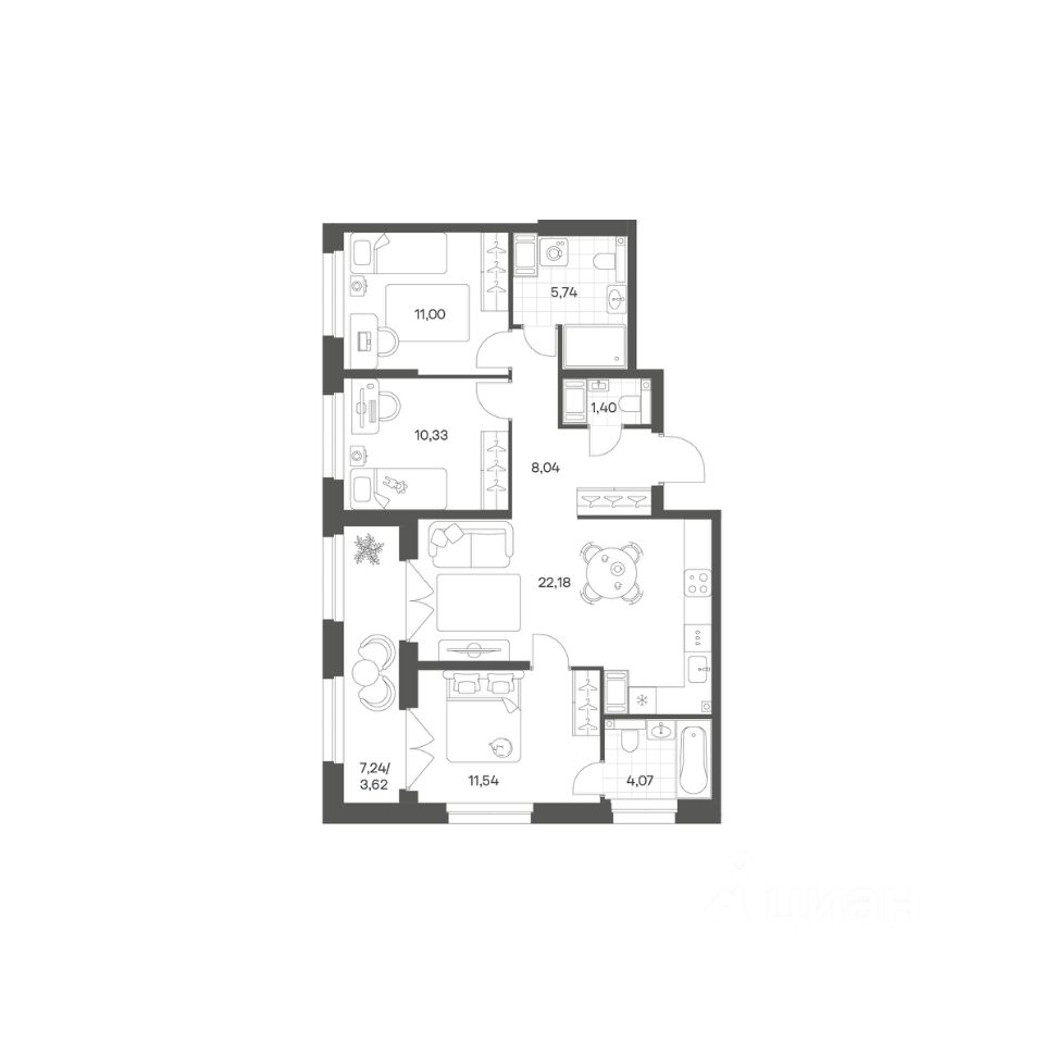 Продается квартира площадью 77.92 м²