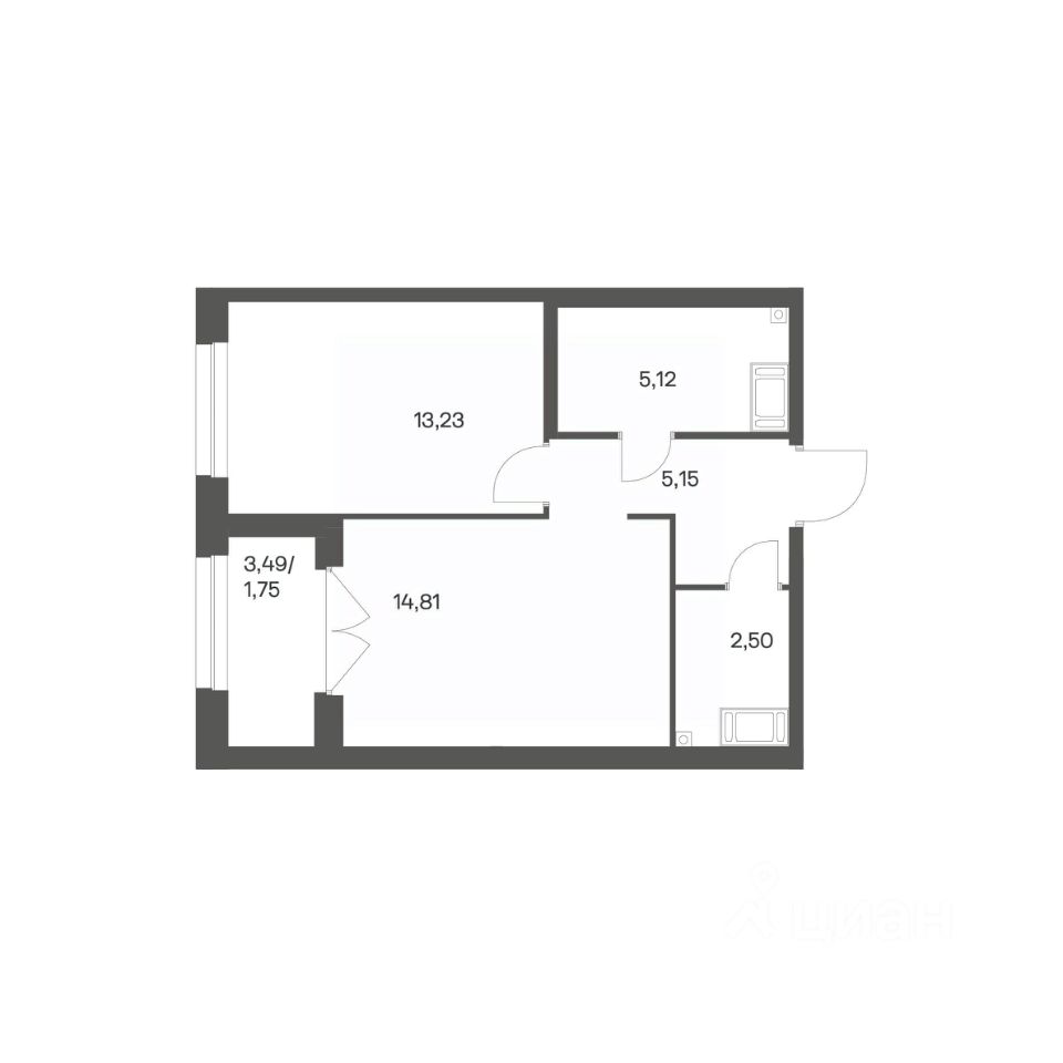 Продается квартира площадью 42.56 м²