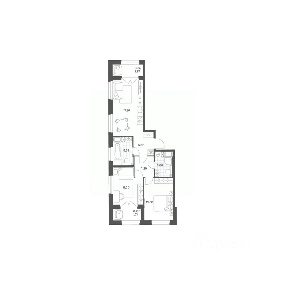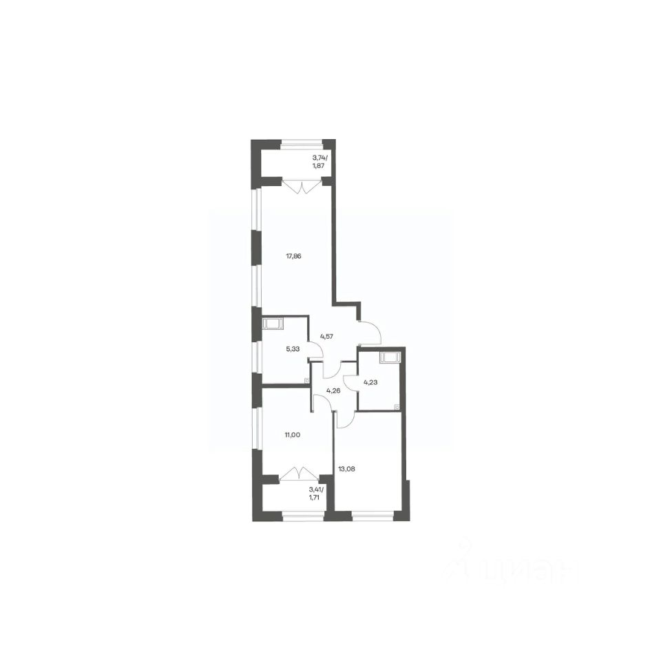 Продается квартира площадью 63.91 м²